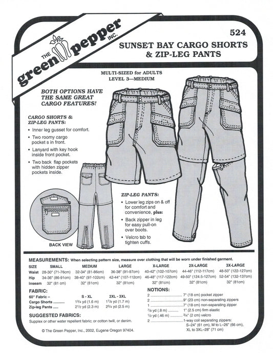 サンセットベイ カーゴ ショーツ & ジップレッグ パンツ 縫製型紙 (各販売)
